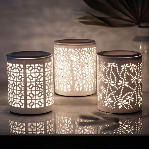 This elegant, electric oil burner lights up to showcase a beautifal tree silhouette pattern and is compatible with both scented fragrance oils and wax melts. To use, place on a level and heat resistant surface before placing oil or wax melts in ceramic dish and plugging in burner. Unplug when not in use and let cool completely before moving or cleaning removable dish with warm, soapy water.